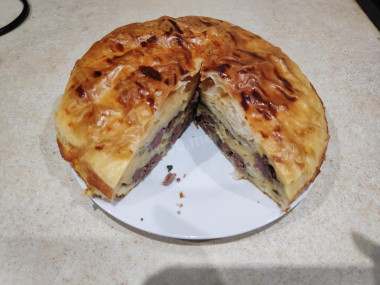Форма какого d использовалась для данного рецепта?Добрый день! У меня была диаметром 26 см, но листы теста укладываются внахлест, поэтому диаметр особой роли не играет. Можно брать и большего размера и чуть меньше (главное, чтобы у маленькой формы бортики были достаточно высокими, так как пирог получится меньше в диаметре, но выше).