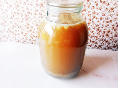 Закрыть квас салфеткой или крышкой не очень плотно, чтобы была возможность для выхода газа. Оставить на сутки при комнатной температуре. Можно закрыть плотно, но тогда нужно следить и периодически спускать выделяющийся при брожении газ, открывая крышку.