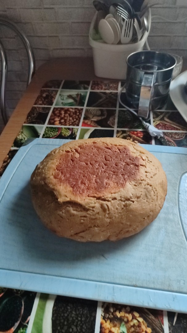 5. После сигнала мультиварки аккуратно переверните хлеб на другую сторону с помощью лопатки или плоской тарелки. Снова поставьте на режим «Выпечка» примерно на 20-25 минут - это нужно, чтобы буханка равномерно пропеклась и покрылась румяной корочкой со всех сторон.