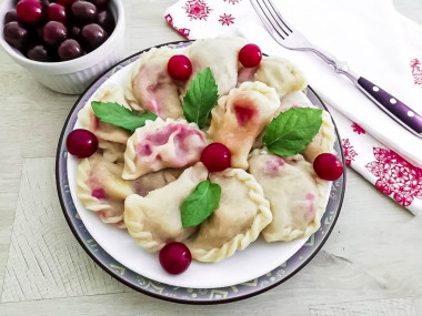 Приготовила вареники по вашему рецепту! Получилось очень вкусно! Во второй раз взяла размороженную вишню и сварила на пару, тоже очень замечательно получилось! Ни один вареник не лопнул и не потёк.