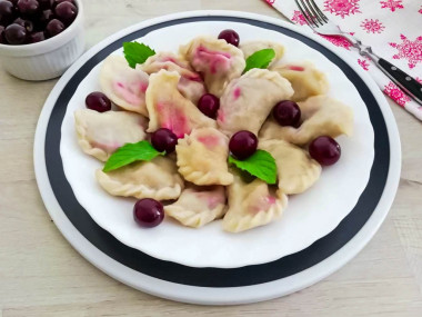 Партию вареников делала с замороженной вишней, а другую партию со свежей, разницы не заметила. Рецепт отправляется в мою копилку, спасибо за вкуснятину )))