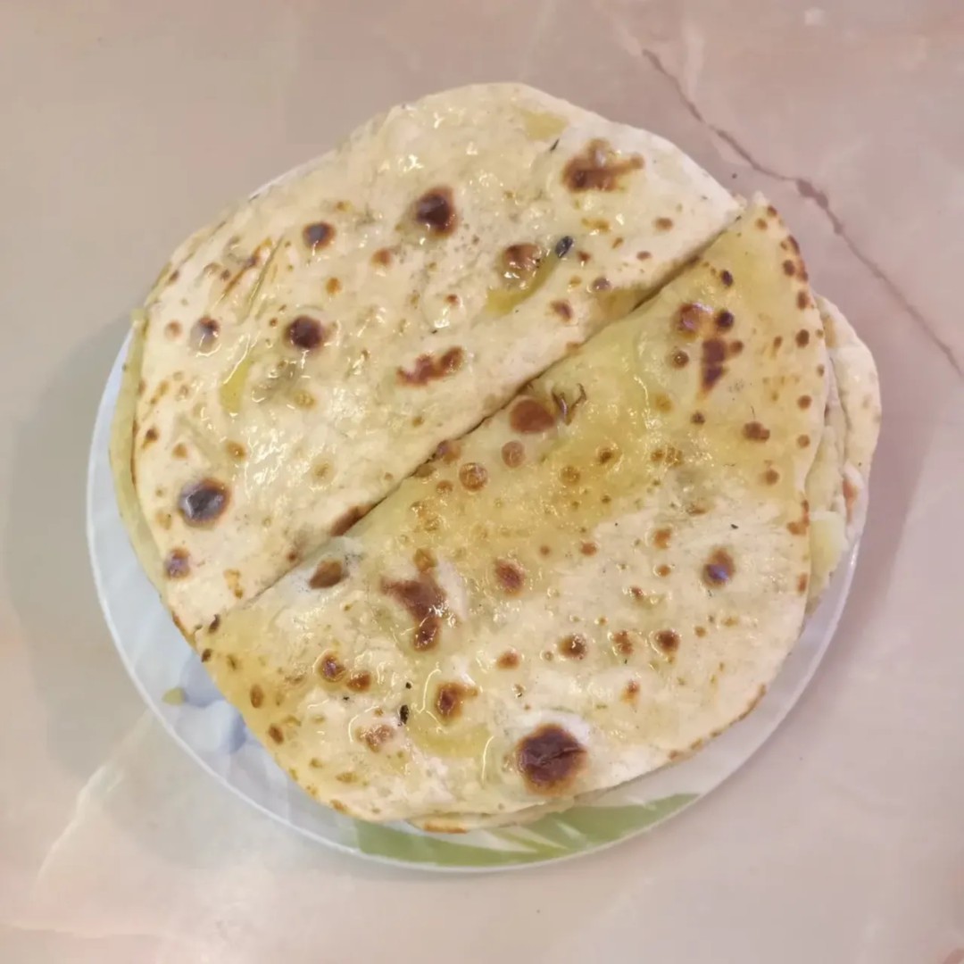 Теперь тесто разделяем на небольшие колобки, каждый тонко раскатываем. Обжариваем на сухой сковороде.