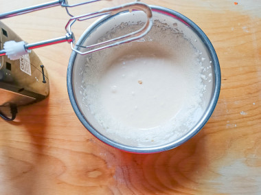 Миксером на высокой скорости взбейте желтки с сахаром до пышной и светлой массы.