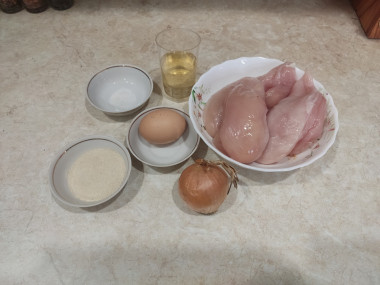 Подготовьте все необходимые ингредиенты. Для котлет можете использовать филе куриной грудки или филе бедра. Мясо заранее разморозьте на нижней полке холодильника. Яйцо тщательно вымойте с моющим средством, подходящим для пищевых продуктов. О правильной разморозке и выборе яиц читайте подробнее в материалах по ссылкам в конце рецепта.