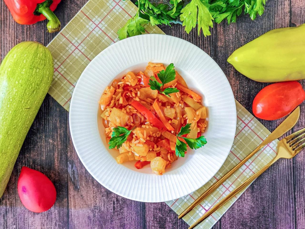 Овощное рагу из кабачков с рисом — это кладезь витаминов и клетчатки. Кабачки улучшают пищеварение, рис дает длительное чувство сытости, а морковь и перец укрепляют иммунитет. Это низкокалорийное, но питательное блюдо, идеальное для здорового рациона, легкого ужина и даже диетического питания.