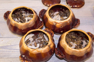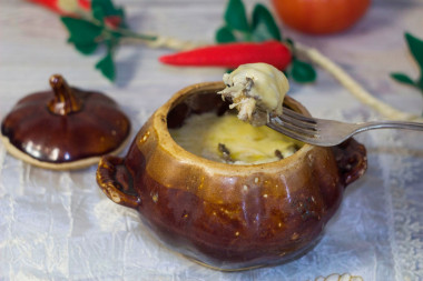Сегодня приготовили жульен с грибами и курицей в горшочках.