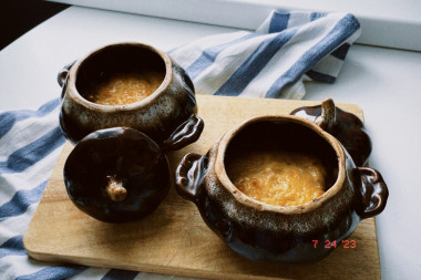 Рецепт написан очень понятно и легко, было нетрудно на него ориентироваться. Обжаривали лук и грибы вместе, получились вкусными и карамелизированными. В горшочки добавили 50мл воды, чтобы мясо протушилось. При подаче использовали столовую ложку сметаны.