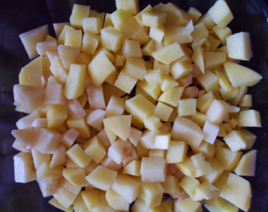 Очищенный картофель нарезаем небольшими кусочками, как на суп.