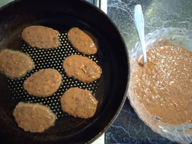 В сковороде на среднем огне разогрейте немного растительного масла, ложкой выложите печеночное тесто и сформируйте небольшие круглые оладьи. Жарьте примерно по 4 минуты с каждой стороны до появления золотистого цвета, периодически подливая растительное масло. Точное время обжарки зависит от толщины вашей сковороды, силы огня и консистенции печеночного теста.