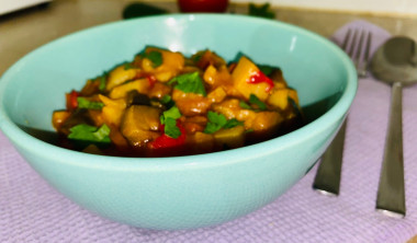 Готовое рагу с картошкой и баклажанами посыпьте душистым перцем или острым молотым перцем Чили, по желанию. Приятного аппетита!