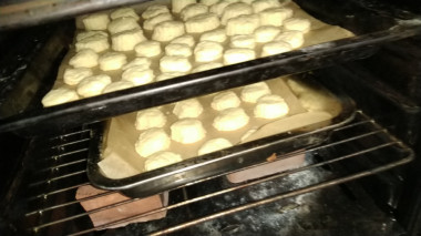 Духовку предварительно включаем на разогрев до 200 градусов, после чего ставим в нее противни с печеньем на 15 минут.