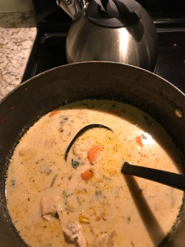 Накройте суп крышкой и потомите на маленьком огне около 5 минут. Затем уберите сырный суп с огня и дайте настояться под крышкой около 10 минут и подайте к столу. Приятного аппетита!