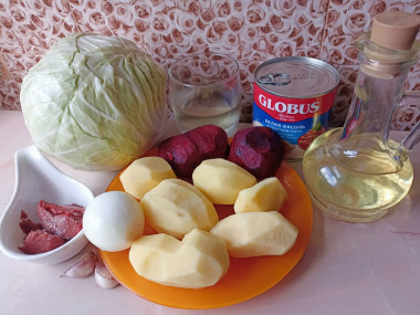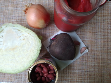 На первое блюдо сегодня приготовила борщ с консервированной фасолью.