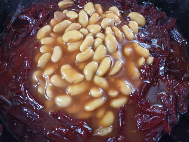Теперь возвращаемся к свекле и добавляем в нее консервированную фасоль.