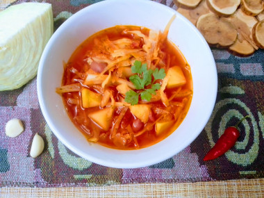 К обеду приготовила борщ с консервированной фасолью. Отличный вариант вегетарианского, постного борща. Вкусно, легко, полезно! Консервированная фасоль делает блюдо более сытным. Спасибо автору за рецепт!