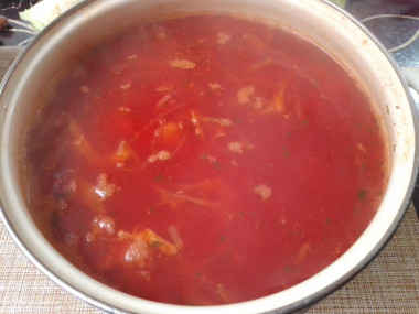 Интересный рецепт борща с консервированной фасолью и технология его приготовления.Обязательно попробую приготовить так.