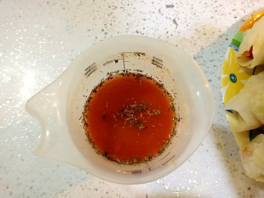 Получившимся томатным соусом залейте обжаренные овощи в чаше. Доведите до кипения. В соус добавьте немного соли и специи по вкусу, я использовала чёрный молотый перец и паприку.
