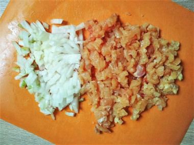 Лук очистите, промойте, нарежьте тонкими полукольцами.