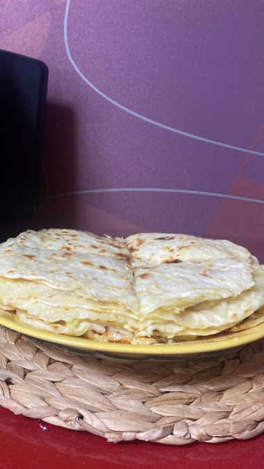 Готовые хычины сложите друг на друга стопочкой. Так они станут еще мягче и дольше останутся горячими. Вся стопка хычинов при подаче традиционно разрезается на 4 части. Подавайте хычины непременно горячими. Приятного аппетита!
