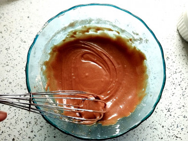 Взбейте все до однородности, затем влейте растопленное сливочное масло и еще раз перемешайте с помощью венчика или миксера.