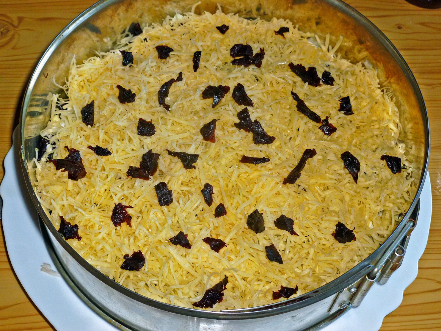 Такой слоеный салат с черносливом Дамский каприз очень хорошо подходит для праздничного новогоднего стола. В нашей семье он легко составляет конкуренцию привычному салату оливье. Я люблю верхним слоем выкладывать тертый сыр. Мне кажется, так ещё вкуснее!