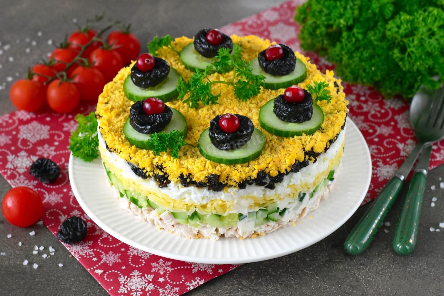 Этот салат с курицей и черносливом — источник качественного белка из куриного филе и яиц, который необходим для мышц. Чернослив улучшает пищеварение и богат калием, а сыр снабжает организм кальцием. Используя легкий майонез или сметану, вы получите не только вкусный, но и полезный праздничный салат.