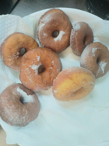Спасибо за рецепт пончиков 🍩, получились с первого раза. Делал сын, всё сам . Однозначно в копилочку, автору огромное спасибо. Фото точто осталось после дегустации 😅 чутка пережарил но всё супер.