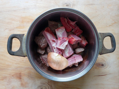 Шаг 1. Как варить классический шулюм из говядины с картошкой на плите в кастрюле?