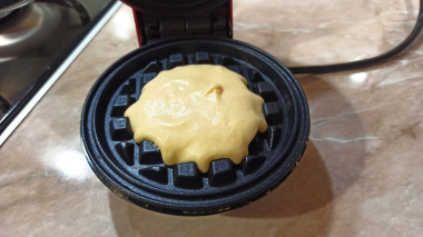 6. Выкладываем тесто в вафельницу и выпекаем в течение 2-3 минут.