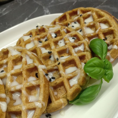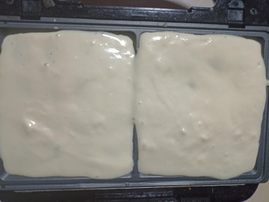 Важно! Учитывайте, что все вафельницы разные. Возможно, пластины вашего прибора нужно будет слегка смазать растительным маслом с высокой температурой дымления при выпекании первого изделия, во избежание его прилипания.