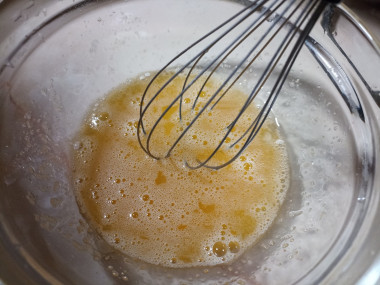 Для теста подберите удобную высокую чашу, чтобы при смешивании теста не летели брызги по сторонам. Соедините в чаше яйцо с сахаром.