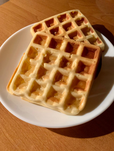 Это первые мои мягкие вафли. Получилось вкусно, подавались с медом, но до вафель в хороших кафе не дотягивают. Буду пробовать другие рецепты, чтобы найти свой. В следующий раз испеку на молоке, а не на кефире. Посмотрим на разницу...