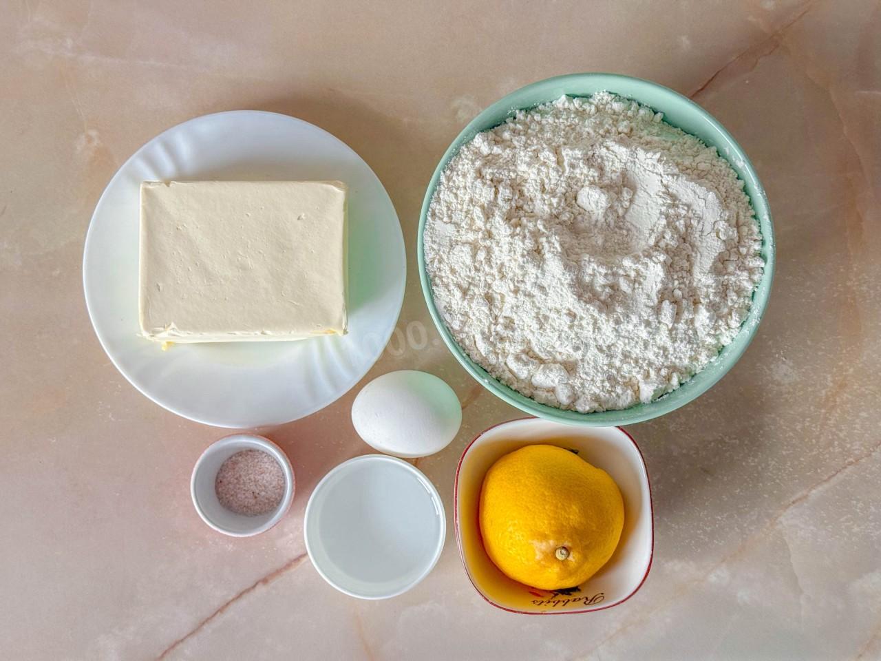 В отдельную миску разбейте яйцо, добавьте воду, размешайте. Добавьте часть муки (из 270 гр), соль и лимонный сок. Начните замешивать тесто ложкой или вилкой, затем руками. Постепенно добавляйте муку и замешивайте тесто. Муки может уйти немного больше или меньше. Зависит от размера яиц и качества муки. Замесите гладкое и эластичное тесто. Получится два шарика теста: из маргарина с мукой и яйца с мукой. Всё о муке и яйцах читайте в статьях под рецептом.