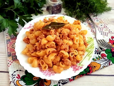 Макароны с фаршем и томатной пастой по флотски на сковороде