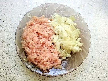 Лук очистите от шелухи, ополосните и мелко нарежьте. Обжарьте лук в небольшом количестве растительного масла 1-2 минуты, до прозрачности.
