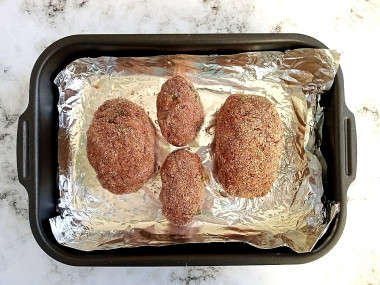 Форму для запекания посыпьте панировочными сухарями и выложите в нее котлеты. Готовьте их в духовке при температуре 180 градусов в течение получаса. Точное время будет зависеть от особенностей вашей духовки. Котлеты должны будут покрыться золотистой корочкой.