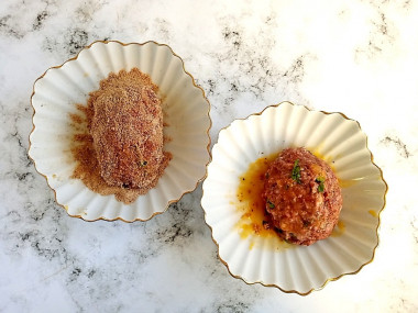 То же самое проделайте со вторым яйцом и оставшимся фаршем. Отправьте котлеты в холодильник на полчаса.