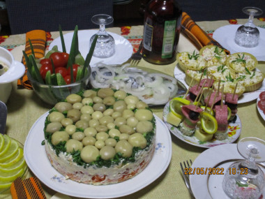 Салат Грибная поляна с шампиньонами готовила для любимого человека, хотела удивить. Сюрприз удался! Отличная идея с разъемной формой для торта. Огромное спасибо!
