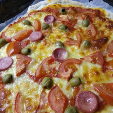 Это просто ФАНТАСТИКА!!! Наконец-то нашла нормальный рецепт пиццы, а точнее именно теста. Начинку добавила свою (соус домашний, моцарелла, помидоры, сосиски, оливки). Муки пришлось ещё немного добавить, тесто было очень пластичным и мягким. Выпекала 20 минут на температуре около 190, всё равномерно пропеклось, бортики с легким хрустом, внутри тесто мягкое и приятное. Теста хватило на две пиццы. Очень всем советую!