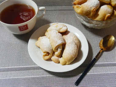 К чаю испекла печенье из сгущёнки и сметаны. Замесила тесто, получается оно мягкое, но не липкое. При его раскатывании на подпыл у меня дополнительно ушло около половины стакана муки. При формировании рогаликов в сахаре их не обваливала. В готовом виде слегка присыпала сахарной пудрой. Выпекалось печенье в моей духовке около 30 минут, сильно зарумянивать его я не стала, чтобы не получилось жёстким. Вкусное печенье, и готовить его достаточно быстро и не сложно. Спасибо за рецепт, Ropotushka!