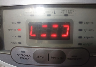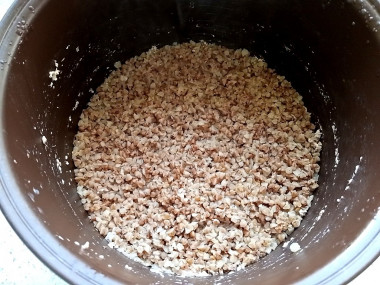 Знаю, что лучше варить кашу из продела, но у меня была только ядрица. Количество продуктов я пересчитала на один стакан крупы с помощью калькулятора сайта. Гречку сначала замочила, чтобы всплыл легкий мусор, а затем хорошо промыла. Переложила в чашу мультиварки и залила смесью воды и 10% сливок, сразу посолила. Готовила на программе "каша", время у меня не выставляется. За 15 минут до готовности раздался сигнал, я заглянула под крышку и долила еще немного воды. Тут надо ориентироваться на желаемую густоту.