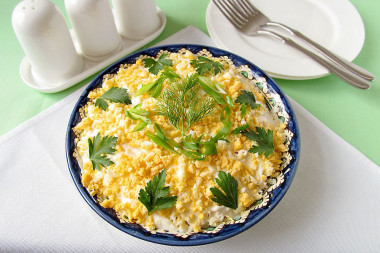 Следующим слоем распределите тертые белки и полейте их майонезом. По желанию можете солить некоторые слои, но я обычно не досаливаю салаты с майонезом, майонеза вполне достаточно.