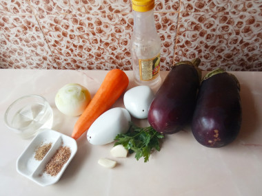 Как сделать баклажаны по корейски? Подготовьте продукты для приготовления закуски. Овощи выбирайте не крупные по размеру, количество специй рассчитано на их небольшое количество. Вместо петрушки хорошо подойдет кинза, если вы ее любите.