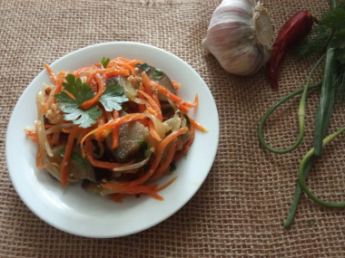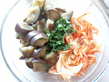 Приготовила баклажаны с морковью по -корейски. От рецепта не отступала. Салат получился очень аппетитный, ароматный, в меру острый. Боялась, что вареные баклажаны окажутся пресноватыми, но они как губка впитали в себя весь букет вкусов и пряностей . Спасибо за рецепт, katushafin!