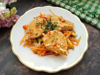 Есть вариант куриного салата с морковкой по-корейски. Очень вкусно.