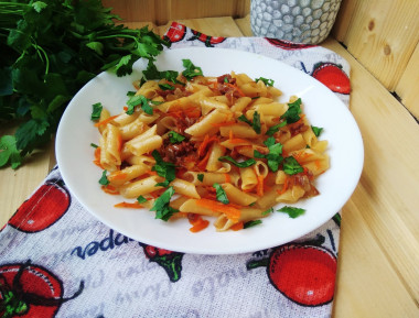 Всем привет! Мы еще те любители макарон. Давайте сегодня приготовим по этому рецепту макароны с тушенкой.