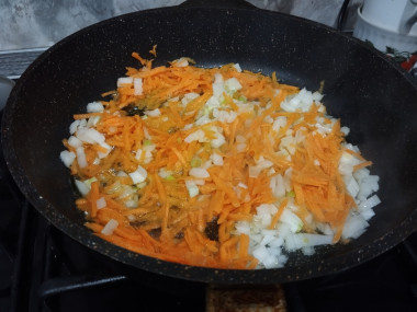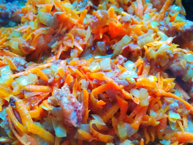 Морковь добавлять совсем не обязательно, одного лука будет вполне достаточно.