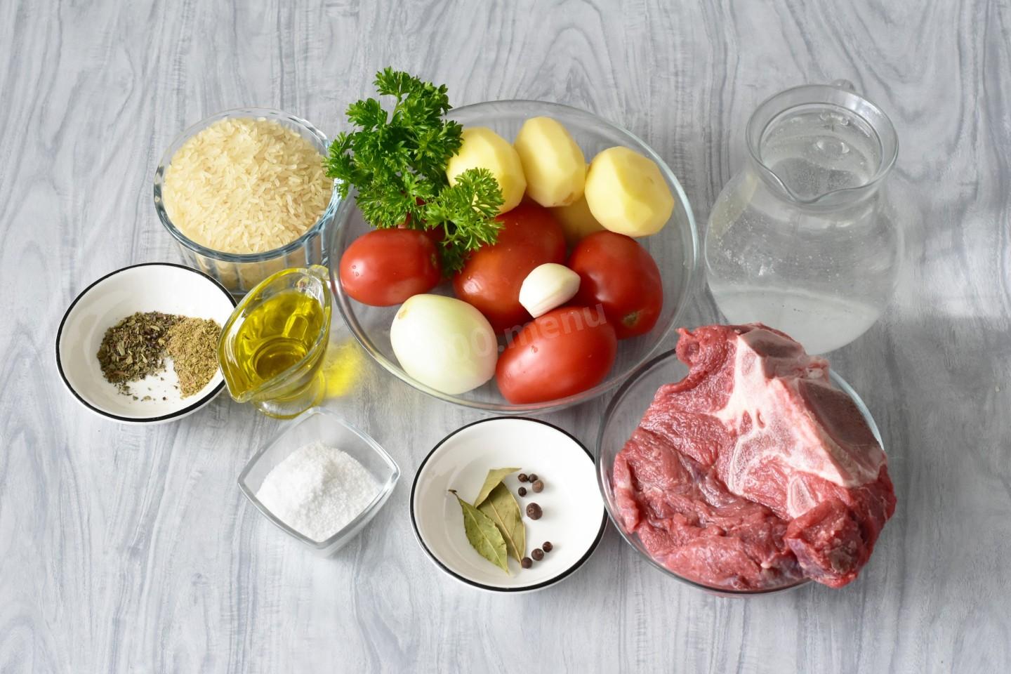Для начала подготовьте ингредиенты по списку. Говядину можете заменить на другое мясо или птицу. Если используете замороженное мясо, необходимо предварительно правильно его разморозить на нижней полке холодильника. Подробнее о разморозке читайте в статье по ссылке в конце рецепта. Для приготовления лучше использовать нейтральную по вкусу фильтрованную или бутилированную воду.