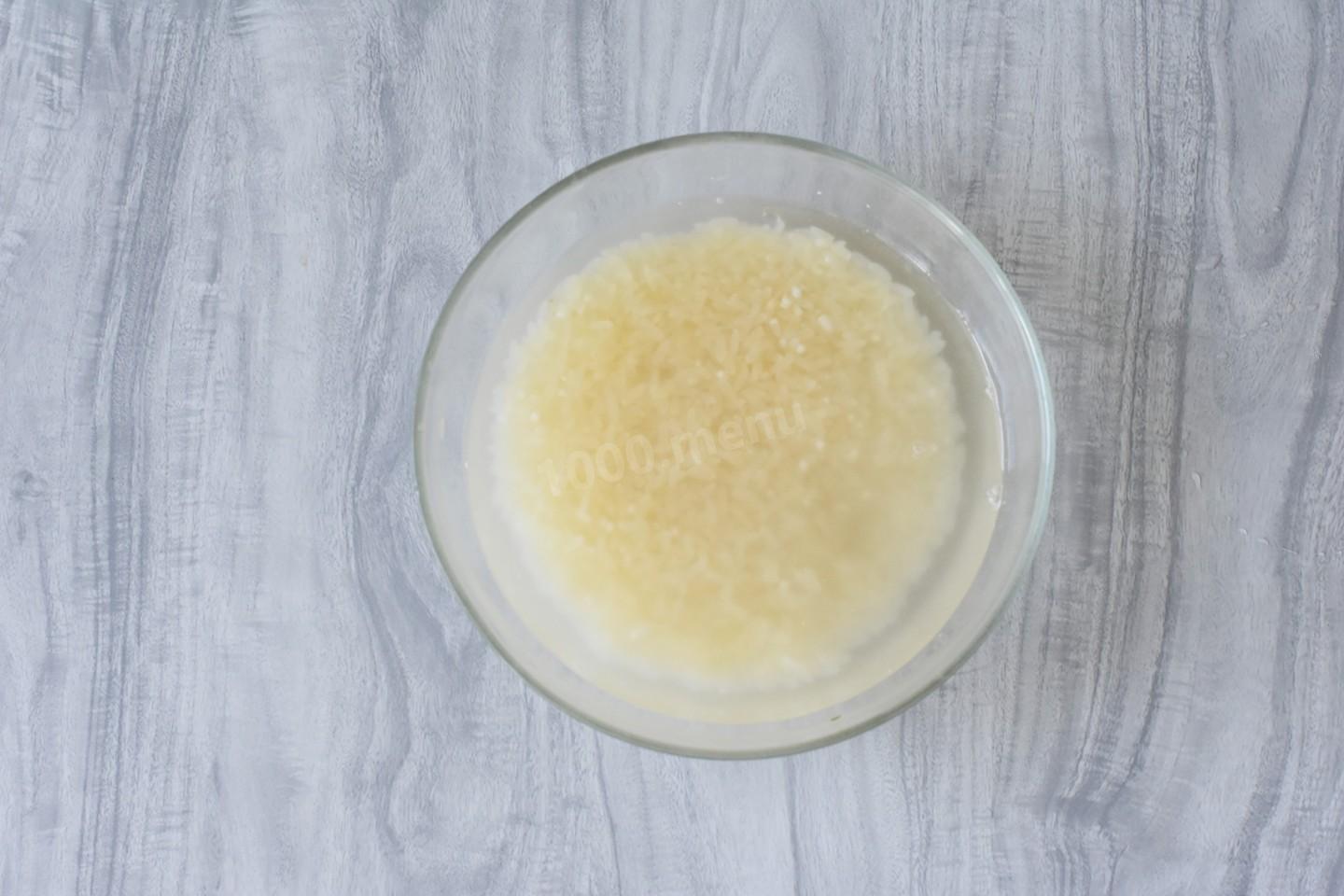 Залейте рис теплой водой в глубокой миске. Оставьте на 20 минут при комнатной температуре. Теплая вода ускоряет набухание риса, сокращая время его приготовления в супе. Крупа впитает часть влаги, что позволит зернам сохранить форму, рис останется слегка упругим. Через 20 минут слейте воду через сито или дуршлаг, слегка прижав рис ложкой, чтобы удалить избыток жидкости. Подробнее о выборе риса и работе с ним читайте по ссылке под шагами.