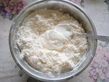 Люблю выпечку из песочного теста. Зачастую готовлю песочное тесто без сметаны, а тут попался мне рецепт "песочное тесто для сочников на сметане". Решила приготовить песочное тесто по этому рецепту с добавлением сметаны для приготовления печенья. Сначала я по описанию в рецепте просеяла муку, а затем натёрла маргарин сливочный вместо масла на тёрке с крупными отверстиями, мокая маргарин в муку, и получилась крошка. После добавила яйца, сметану, разрыхлитель и сахар. Перемешала тесто, не сильно вымешивая, чтоб все ингредиенты соединились между собой. Сделала шар из теста, положила в пакетик и убрала в холодильник на пол часа. Тесто получилось нежное, мягкое и податливое. Песочное тесто на сметане хорошо раскатывалось, не рвалось. Удобно работать с таким тестом в кулинарных перчатках. Печенье из этого теста вышло изумительное. Готовить песочное печенье на сметане мне помогал сыночек. Остывшее печенье получилось хрустящее и рассыпчатое. Особенно понравилось ребенку. Большое спасибо автору!